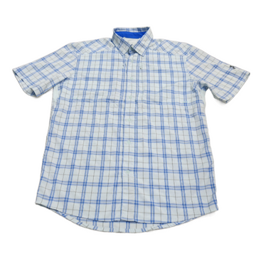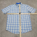 Under Armour Mens Plaid Button Up Shirt Loose Fit Short Sleeve Blue White SZ SM