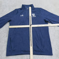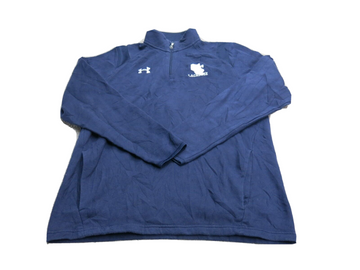 Under Armour Mens Sweater 3/4 Zip Up Sweatshirt Mock Neck Loose Fit Logo Blue SM