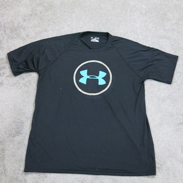 Under Armour Mens T Shirt Short Sleeves Loose Heatgear Black Logo Size Large