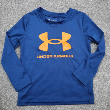Under Armour Shirt Boy Size 18M Blue Long Sleeve Shirt Top Big Logo Crew Neck