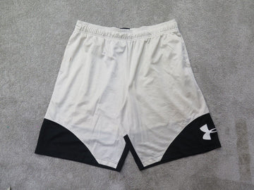 Under Armour Shorts Men 2XL White Swoosh Logo Loose Fit Athletic Running Jogging