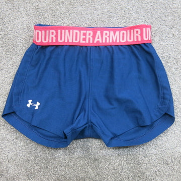 Under Armour Shorts Youth Sz 2T Blue Logo Elastic Athletic Gym Workout Training