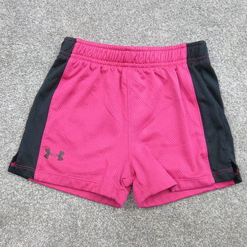 Under Armour Shorts Youth Sz 5 Pink Black Mesh Solid Heatgear Athletic Training