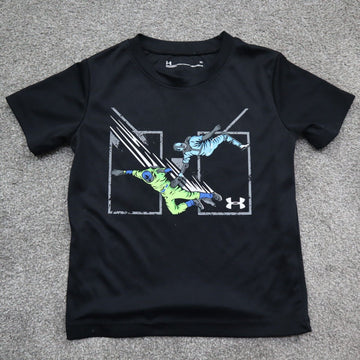 Under Armour T Shirt Boys Size 3T Black Solid Short Sleeve Heargear Graphic Tee