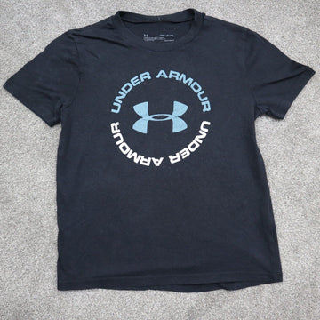 Under Armour T Shirt Boys Size S/M Black Solid Short Sleeve Heatgear Loose Tee