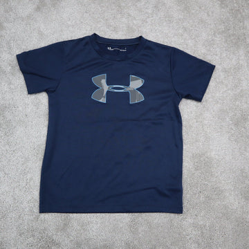 Under Armour T Shirt Mens Size 7 Blue Solid Short Sleeve Heatgear Loose Tee Logo