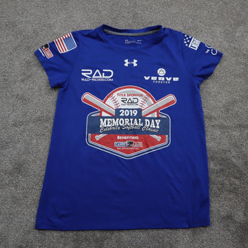 Under Armour Women Crew Neck Graphic T Shirt Loose Fit Heatgear Navy Blue Size M