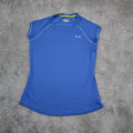 Under Armour Women Heatgear Tank Tee Sleeveless Fitted Logo Blue Size Small