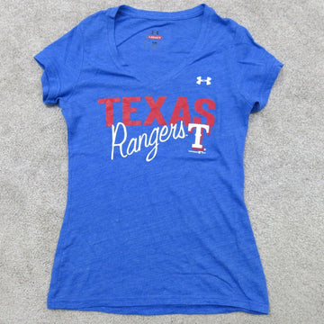 Under Armour Women Pullover T Shirt Top Semi Fitted Short Sleeve Blue SZ Small