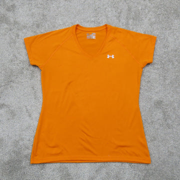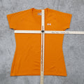 Under Armour Women T Shirt Top V Neck Short Sleeve Semi Fitted Heatgear Orange M