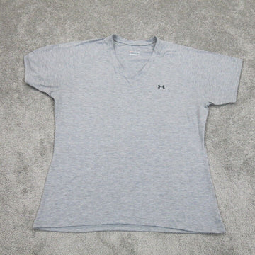 Under Armour Women Tech T Shirt Top Loose Heatgear V Neck Short Sleeve Gray XL