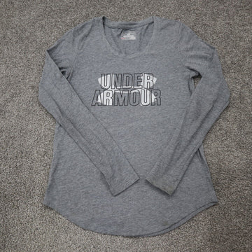 Under Armour Womens Compression Shirt Top Heatgear Long Sleeve Logo Gray Size XS