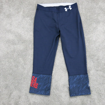 Under Armour Womens Cropped Leggings Pant Elastic Waist Logo Blue Size Large