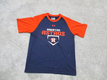 Under Armour Women's Houston Astros Basic T Shirt Crew Neck Red Blue Size YXL