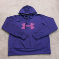 Under Armour Womens Pullover Drawstring Hoodie Long Sleeves Logo Purple Size L