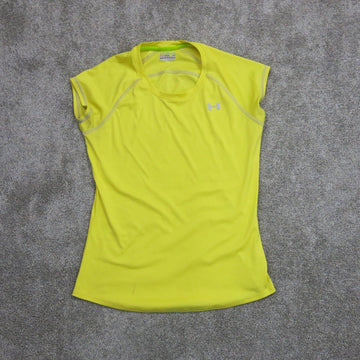 Under Armour Womens T Shirt Top Semi Fitted Heatgear Crew Neck Yellow Size S/M
