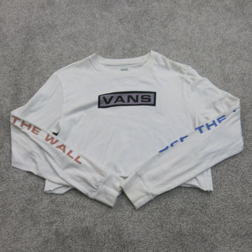 Vans Womens Activewear Short Length Blouse Top Long Sleeve Crew Neck White SZ M