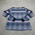 Victoria Secret Women V Neck Knitted Sweater Long Sleeves Geometric Blue Pink M