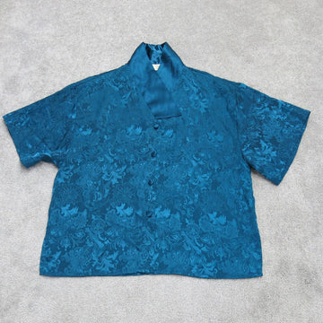 Victoria Secret Womens Party Floral Button Up Shirt Short Sleeves Blue Size M