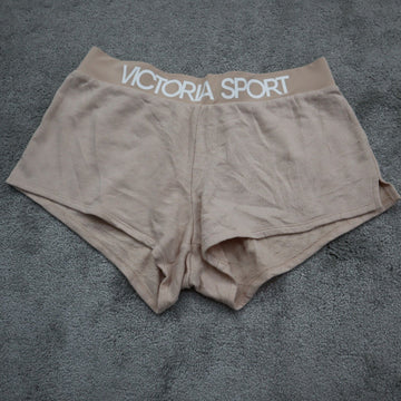 Victoria Sports Women Athletic Shorts Cross Fit Elastic Waist Logo Peach Size M