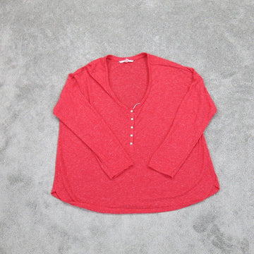 Victorias Secret Womens Henley Sweatshirt Top Long Sleeve Heather Red Size Large