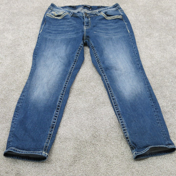Vigoss Womens Capri Jeans Beaded Five Pockets Cotton Mid Rise Blue Size 25