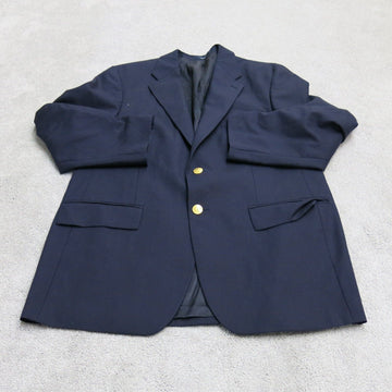 Vintage Men Blazer Jacket Long Sleeve Front Button Solid Dark Blue Size 32