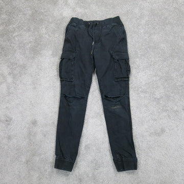 Vintage Womens Activewear Jogging Pant Cargo Pockets Elastic Waist Black Size XS