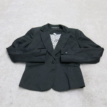 Vintage Womens Blazer Coat Front 2 Button Long Sleeve Stripe Pocket Black Size 2