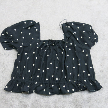 Vintage Womens Polka Dot Puff Sleeve Crop Top Square Neck Black Size Length 15.5