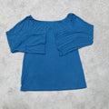 White Black House Market Womens Blouse Top Round Neck Long Sleeves Blue SZ Small