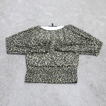 White House Black Market Women Blouse Top Smocked Hem Camouflage Army Green XS