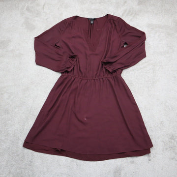 White House Black Market Women Fit & Flare Dress Long Sleeve V Neck Maroon Sz 12