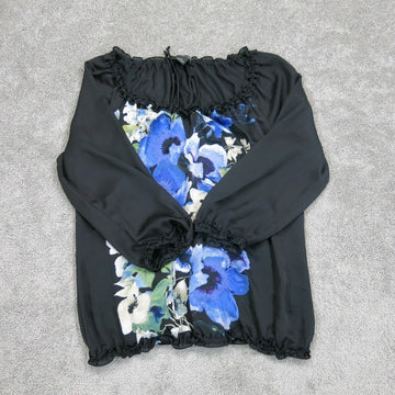 White House Black Market Women Floral Blouse Shirt 3/4 Sleeve Black Size Small