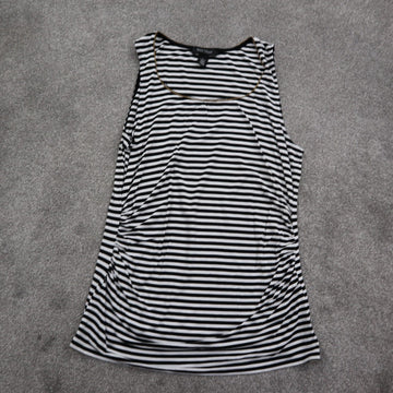 White House Black Market Women Stripe Gold Metallic Top Sleeveless Black White L