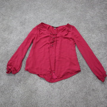White House Black Market Womens Blouse Top Front Lace Up V Neck Red Size 6