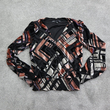 White House Black Market Womens Geo-Burnout Velvet Blouse Top Long Sleeve XS