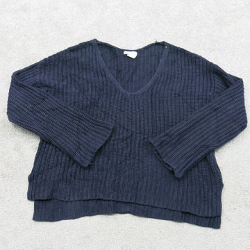 Women Basic Pullover Knit Sweater Long Sleeves V-Neck Cable Knit Black Size S