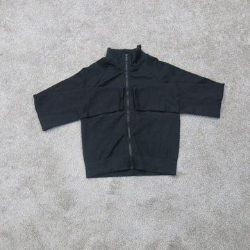 Womens Full Zip Up Sweatshirt Short Sleeves Mock Neck Black Size Medium