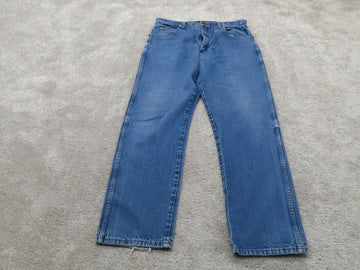 Wrangler Men Straight Leg Jeans Denim Stretch 5 Pockets Cotton Blue Size W36XL34