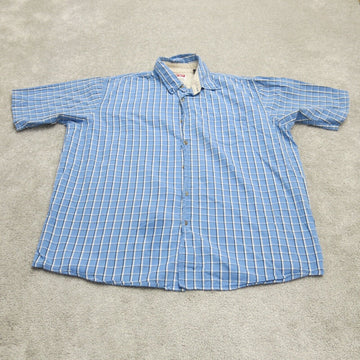 Wrangler Mens Button Down Shirt Check Short Sleeve Cotton Blue White Size Large