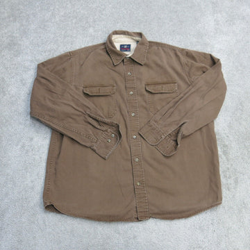 Wrangler Mens Button Up Shirt Long Sleeve 100% Cotton Pocket Brown Size Large
