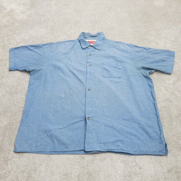 Wrangler Mens Button Up Shirt Short Sleeves Pockets 100% Cotton Blue Size XL