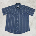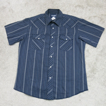 Wrangler Mens Button Up Striped Shirt Short Sleeves Collar Neck Blue Size Large