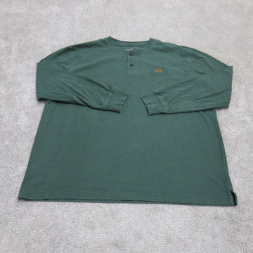 Wrangler Mens Henley Sweatshirt Long Sleeves Chest Pocket Green Size Large