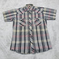 Wrangler Mens Plaid Button Up Western Shirt Short Sleeve Pockets Gray Black SZ L