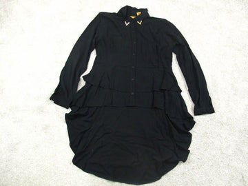 Wrangler Womens Blouse Tops Ruffle Frill Swallow Tailed 3/4 Sleeve Black SZ S/P