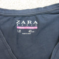 Zara Basic Womens Crew Neck T Shirt Slim Fit V Neck Solid Black Size Large