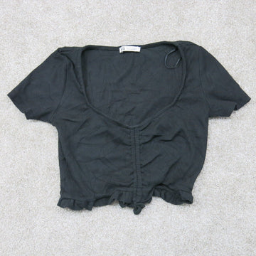 Zara Basics Womens Blouse Top Scoop Neck Cap Sleeves Black Size Medium