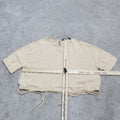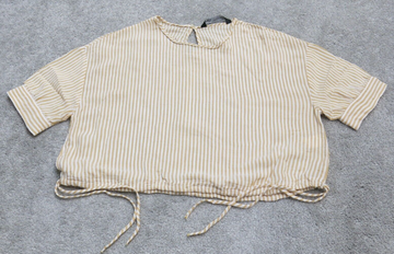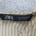 Zara Basics Womens Striped Cropped Blouse Top Drawstring Hem Yellow Cream SZ XS